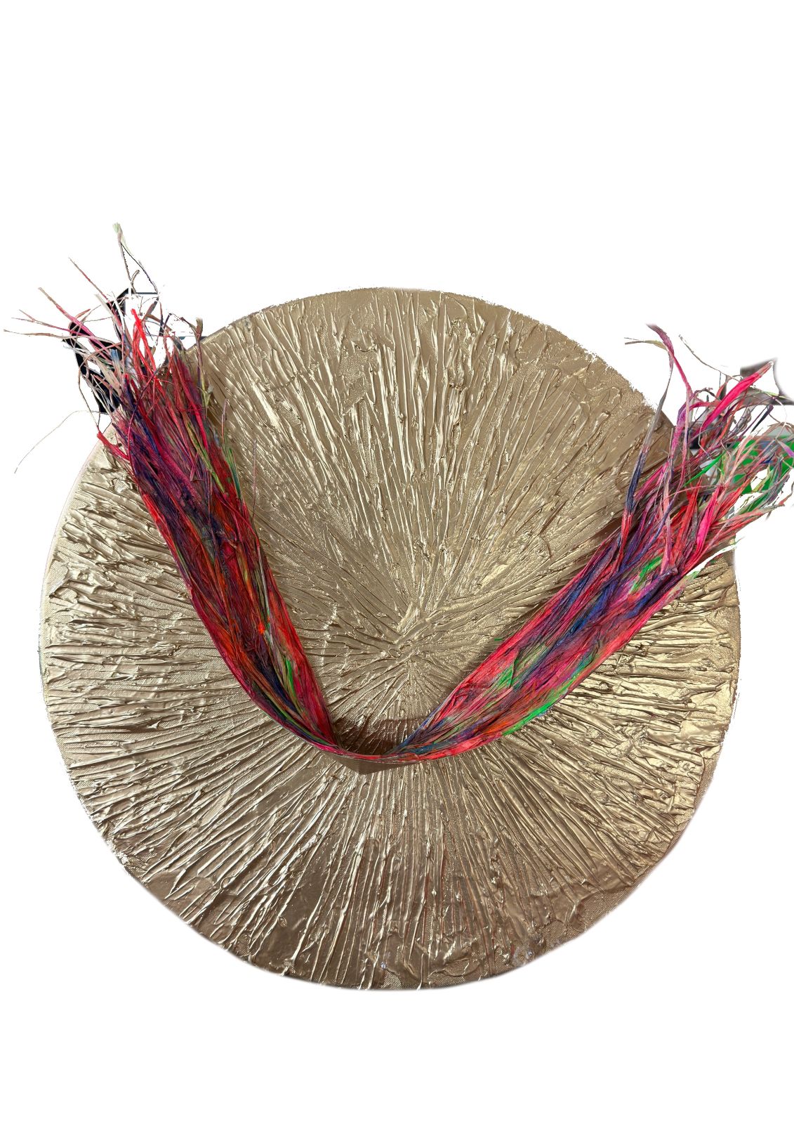 ACRYLIC ON CANVAS, TIMBER FIBRES, RAFFIA