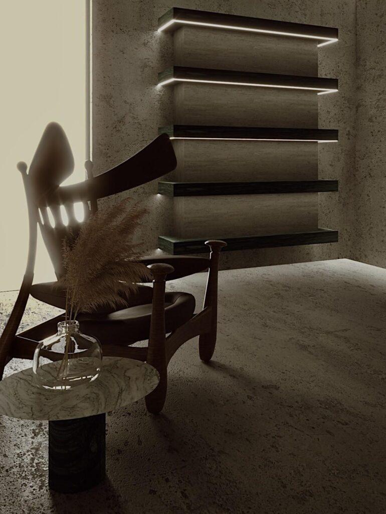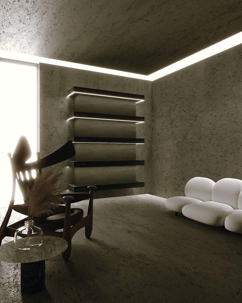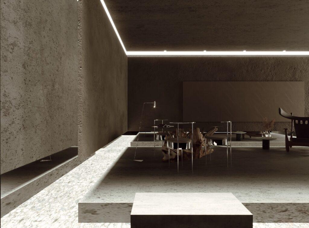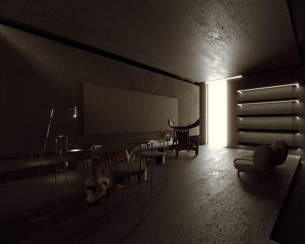 Located in the north of Brazil: Amapá, the Room V Room was designed in order to establish an interior that expresses the essence of the company (Vitar Incorporadora) by elements of the local Amazonian culture. The presence of concrete and natural stones are the main sensory elements of space. Masters of Brazilian design are present in the curatorship of furniture, such as Campanas´s brothers and Sergio Rodrigues.