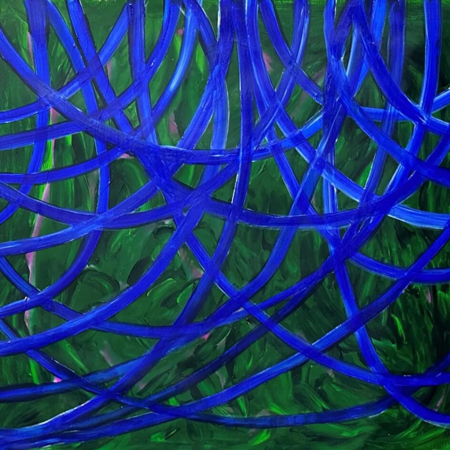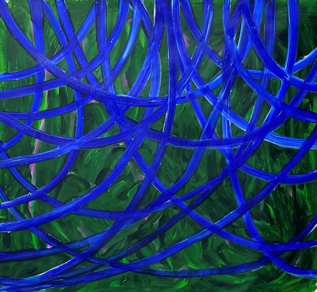 SILK OVER OIL AND ACRYLIC ON CANVAS