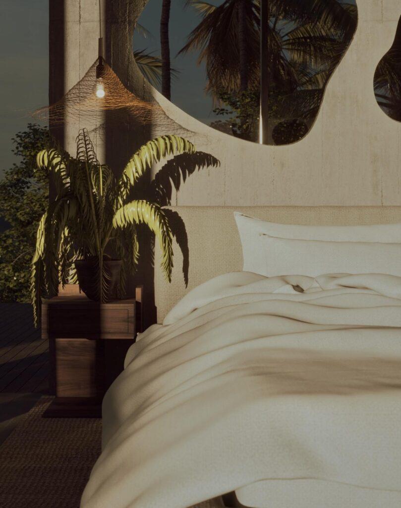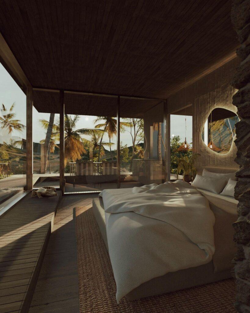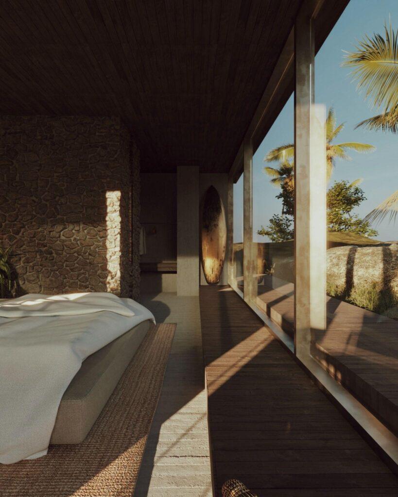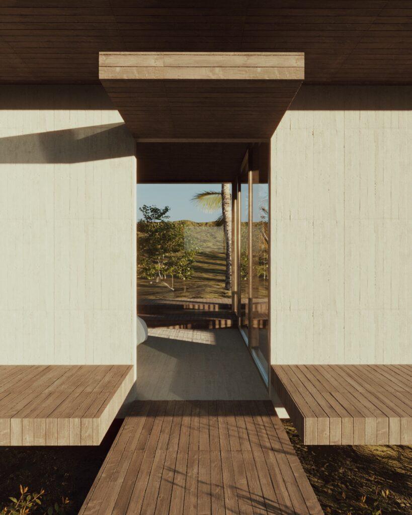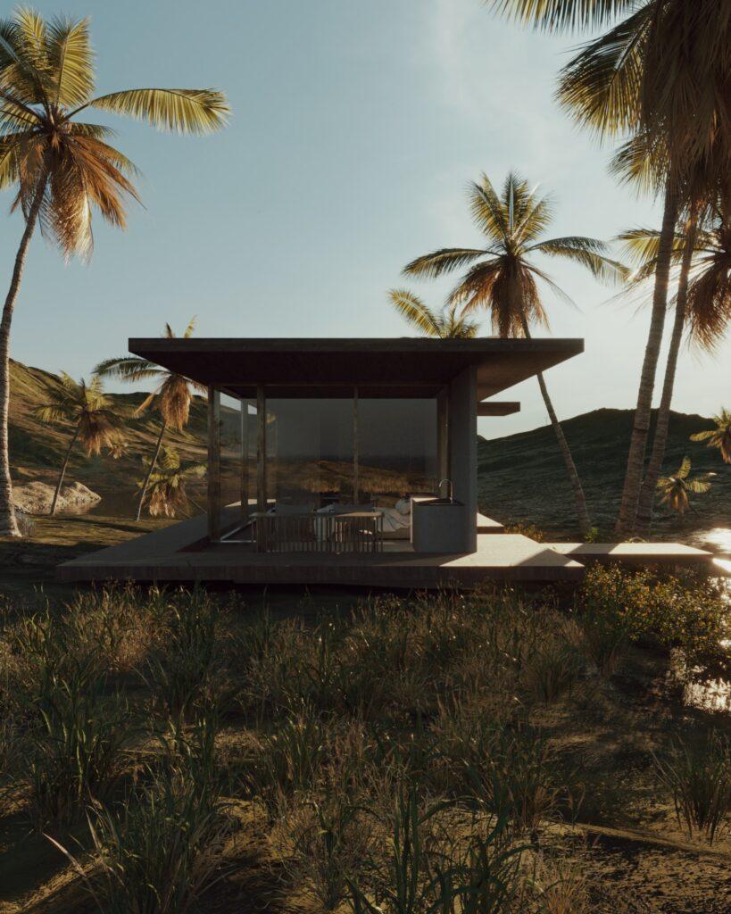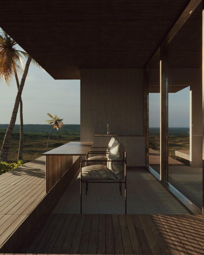 A design proposal, which features units for hospitality as small studios. The goal of bringing guests closer to a unique experience on the island of Fernando de Noronha. Each unit has a private bathroom, a small kitchen and a walk-in closet. The characteristics of the construction are minimalist with natural materials, evoking a lifestyle and quality of living.